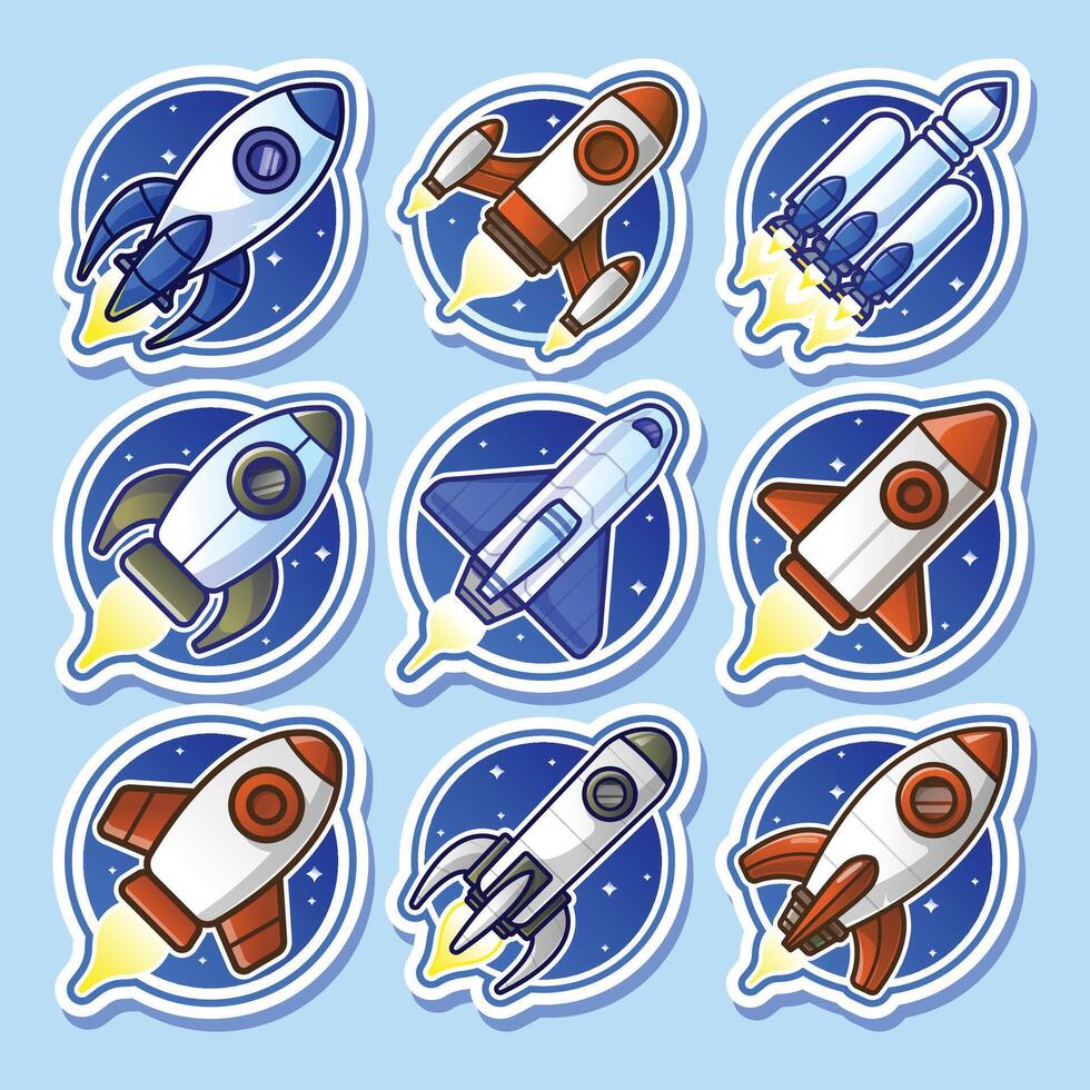 Set of Spaceship and Rocket Sticker. Science and Technology Illustration Theme. Pro Vector