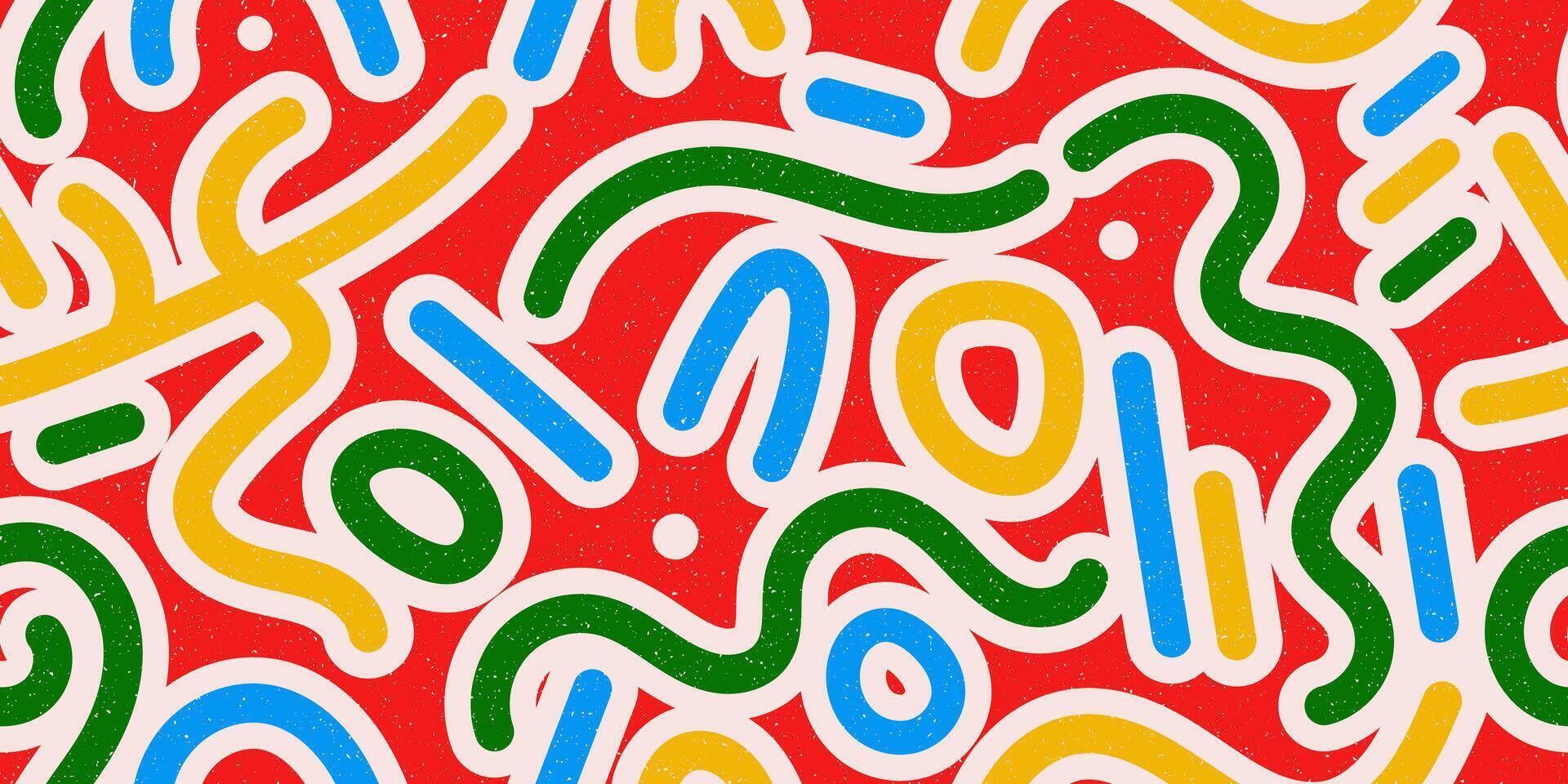 Seamless geometric pattern with lines with bold stroke. Minimalist retro style texture with grainy effect. 80s style geometric collage. Simple pattern. Circles, waves, curves Pro Vector