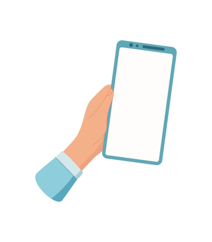A hand holds a modern smartphone with a blank template. This device serves as mobile platform for user applications. The touch screen is perfect for digital media or communication needs. Pro Vector