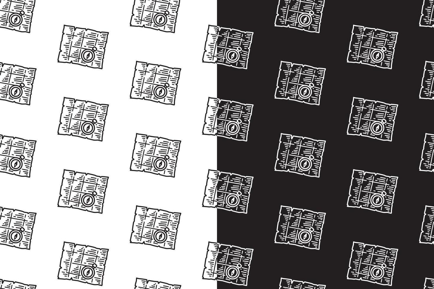 old map with compass doodle seamless pattern on black white background set. hatching topographic map background. treasure map engraving wallpaper. pattern background with world map for adventure Pro Vector