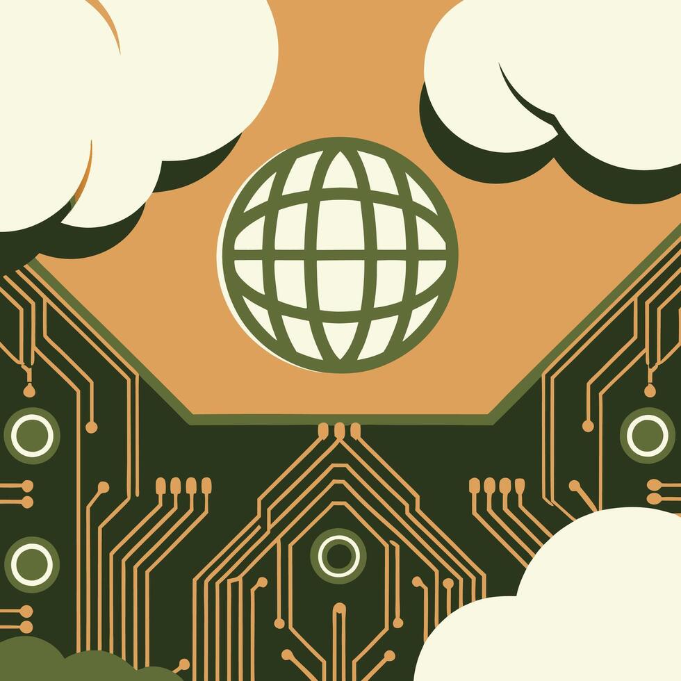 Global Technology, Circuit Board, and Cloud Computing Free Vector