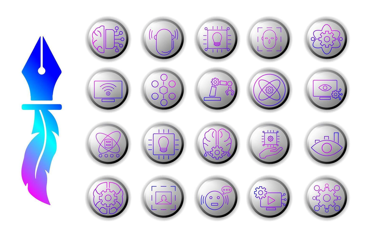 Artificial Intelligence icon set with futuristic design and modern aesthetics, with gradient style giving the impression of advanced and elegant technology. Pro Vector