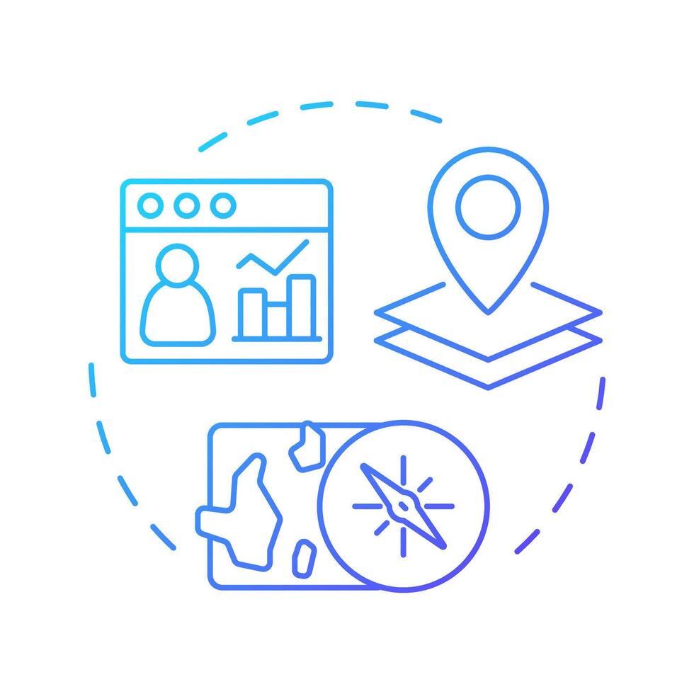 Geographic analysis blue gradient concept icon. Marketing based on customer location. Commercial data. Round shape line illustration. Abstract idea. Graphic design. Easy to use in presentation Pro Vector