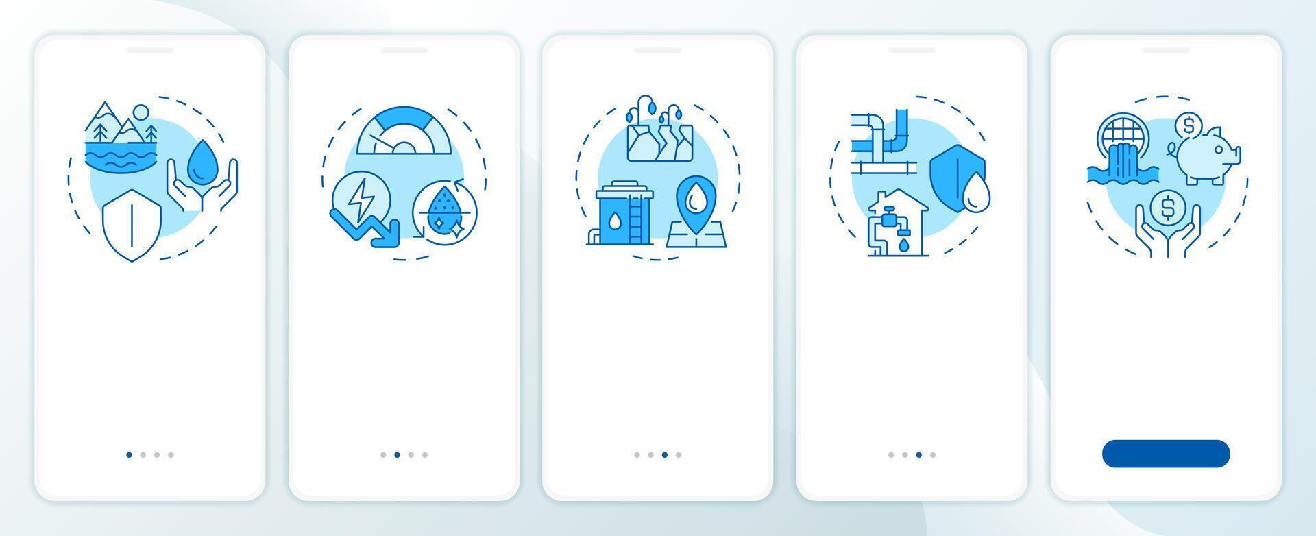 Benefits of water recycling blue onboarding mobile app screen. Walkthrough 5 steps editable graphic instructions with linear concepts. UI, UX, GUI template Pro Vector