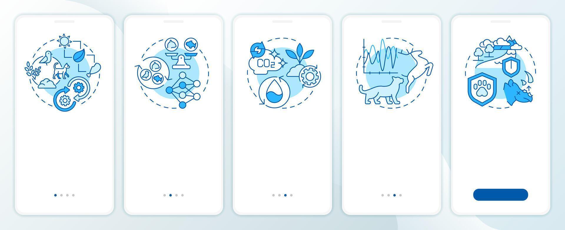 Ecological balance blue onboarding mobile app screen. Food chain. Walkthrough 5 steps editable graphic instructions with linear concepts. UI, UX, GUI template Pro Vector