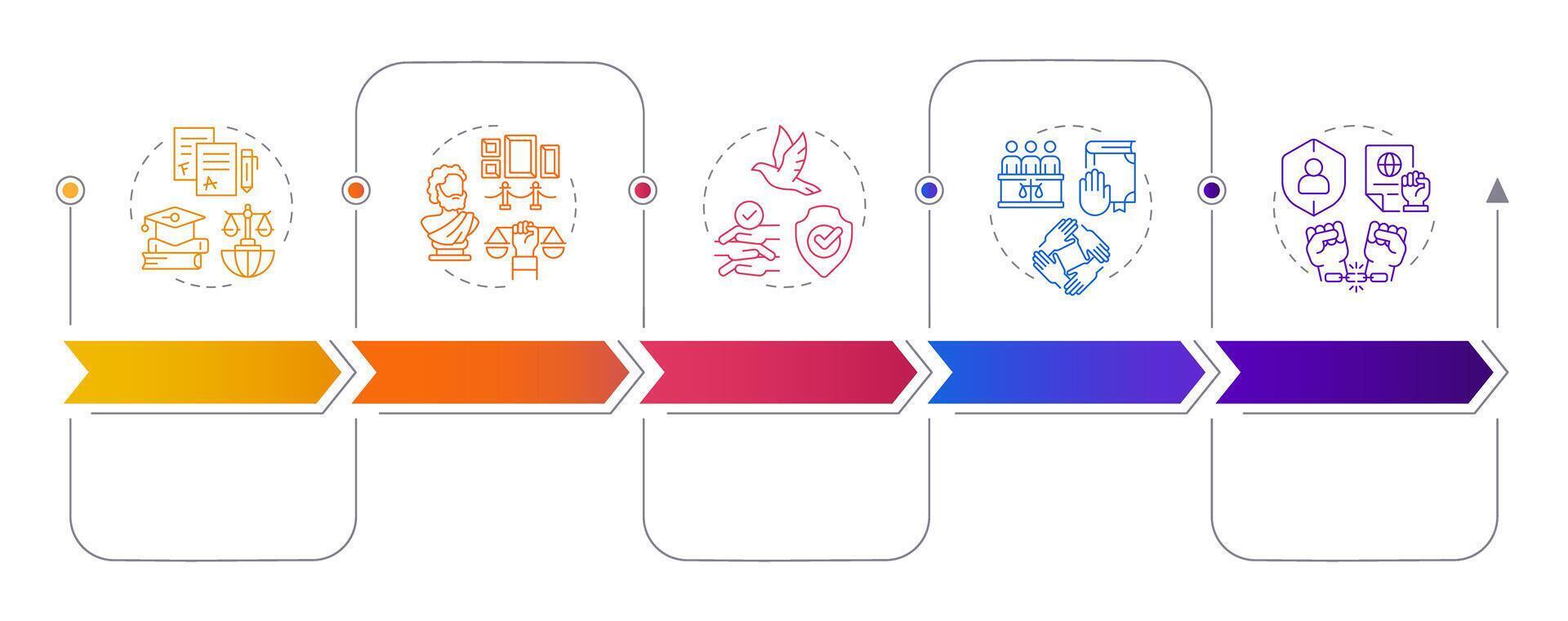 Human culture rights rectangular infographics. Social order. Oppression, democracy. Visualization template 5 options. Horizontal flowchart with line icons Pro Vector