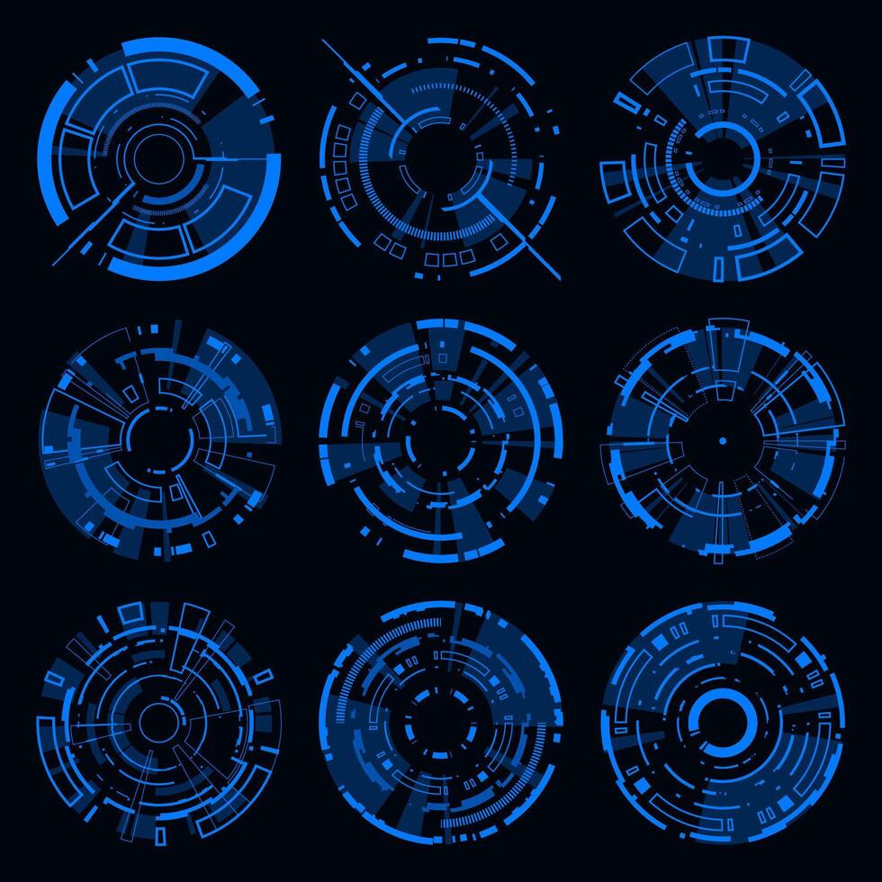 Hi-tech HUD interface futuristic cyberpunk style design element. Pro Vector