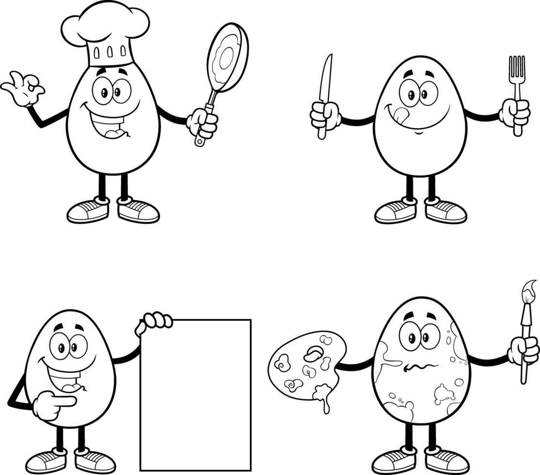 Outlined Easter Egg Character In Different Poses. Hand Drawn Collection Pro Vector