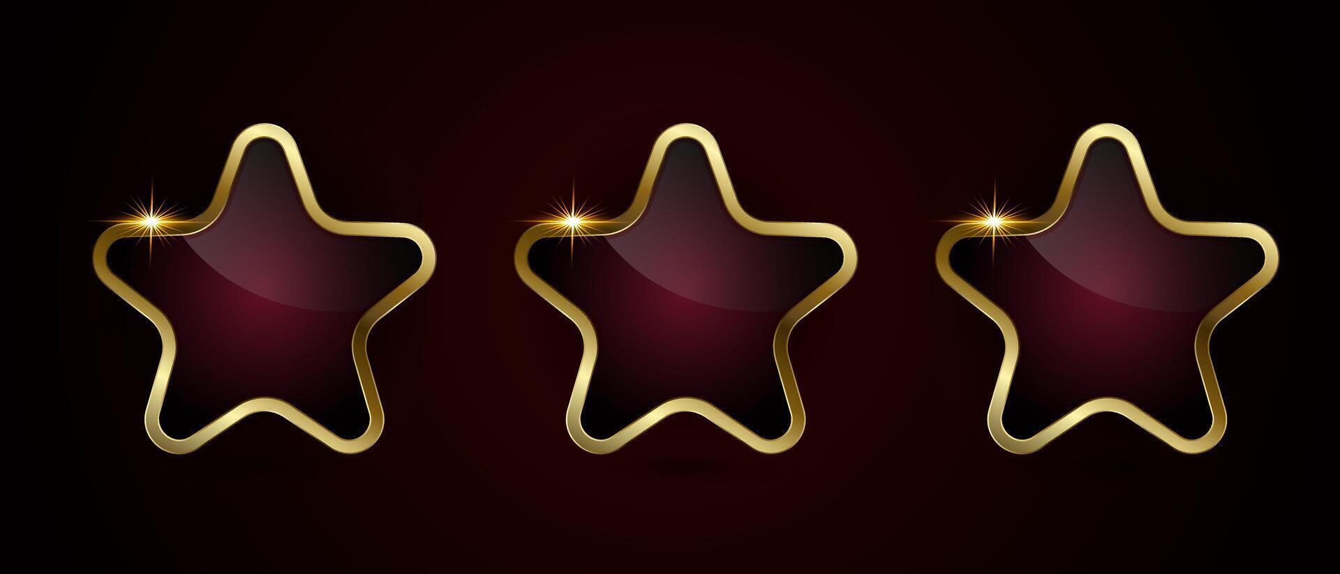 Set of three red luxury star buttons design on dark gradient background, three enclosed by a shiny gold metallics border. used in banner, button, web UI design, option concept Pro Vector