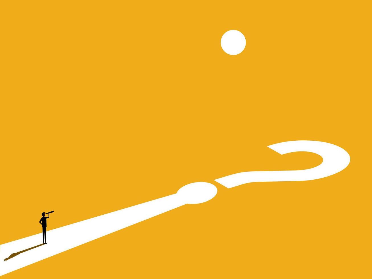 Predict problems, obstacles. Businessman on the road of question mark Pro Vector