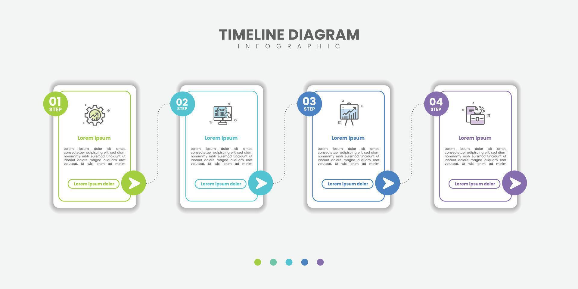 Business infographic template. 4 Step timeline journey. Process diagram, 4 options link shape isolated on white background, Pro Vector