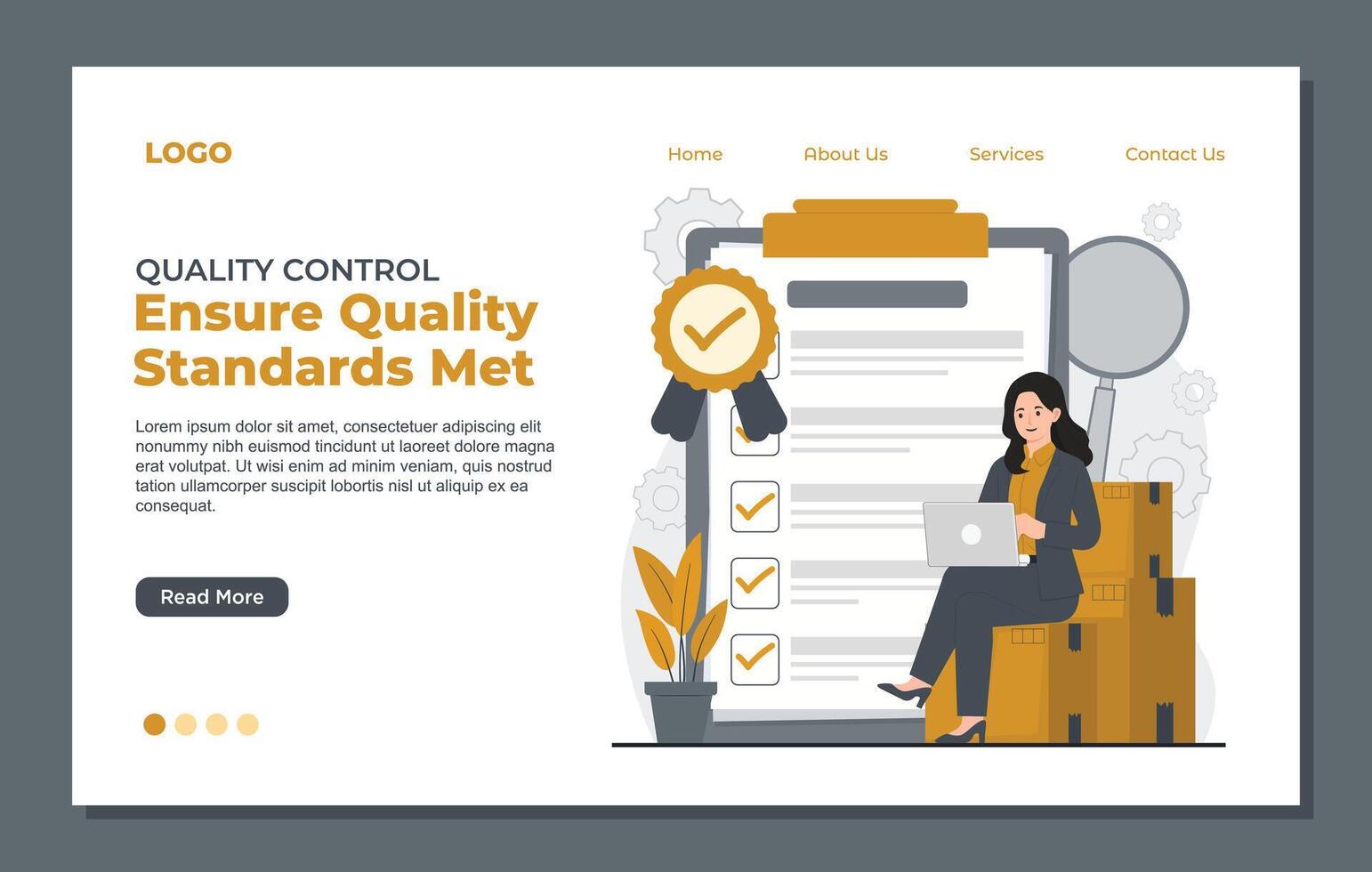 Iso certification Landing page template for quality control and ISO 9001 certification, designed Pro Vector