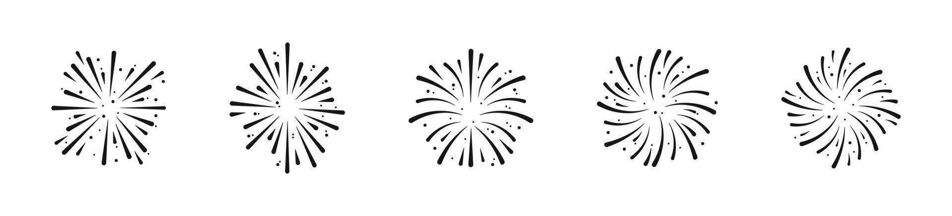 Exploding fireworks. Fireworks illustration. Pyrotechnics show. Beautiful light performance. Pyrotechnic icons Pro Vector