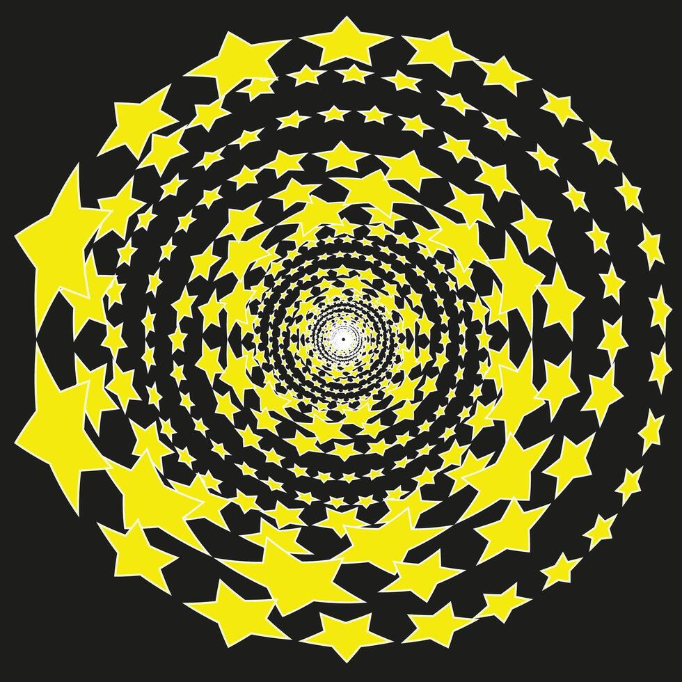 Round abstract pattern in the form of a spiral of gold stars on a black background Pro Vector