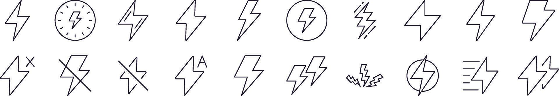 Lightning Line Icon Set. Editable Stroke. Minimalistic Linear Pictogram for Design of Cards, Apps, Banners, Posts Pro Vector