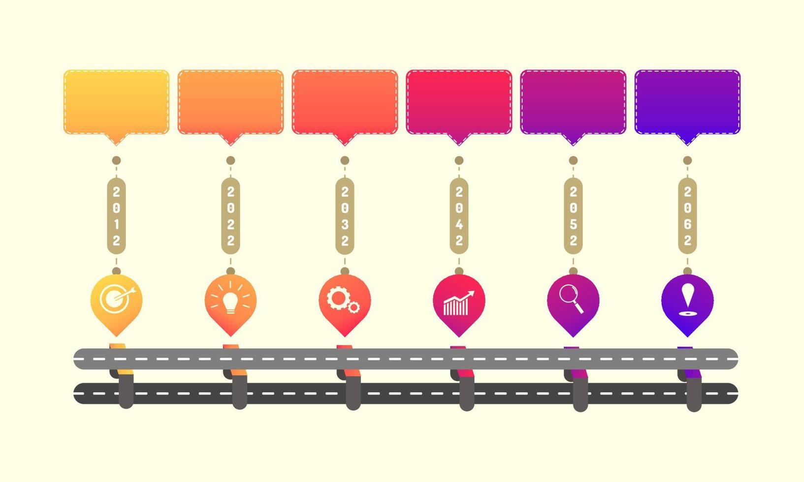 skyway roadmap timeline elements with markpoint graph think search gear target icons. vector illustration eps10