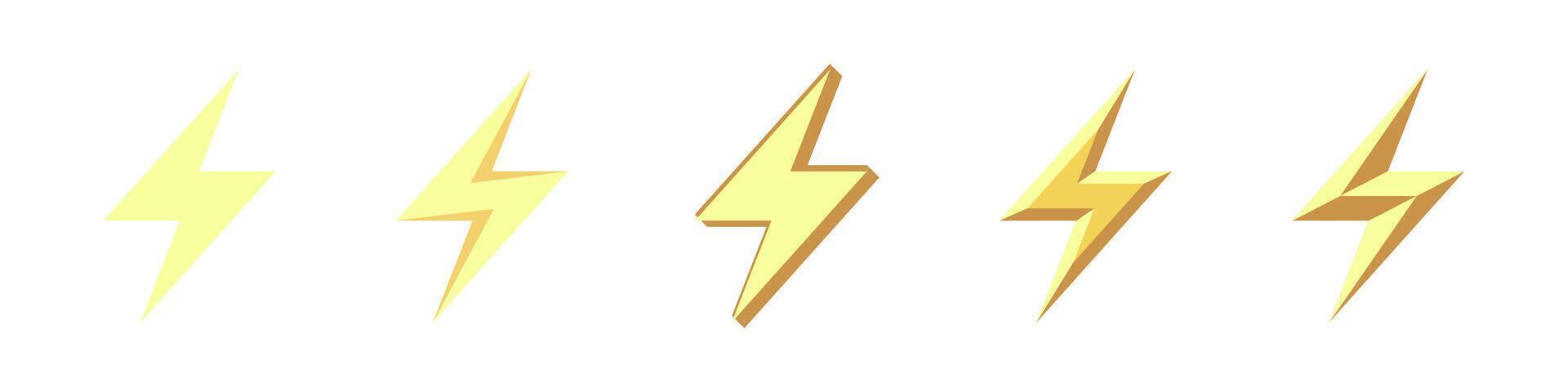 Lightning Bolt Icons in Various Styles Set Pro Vector