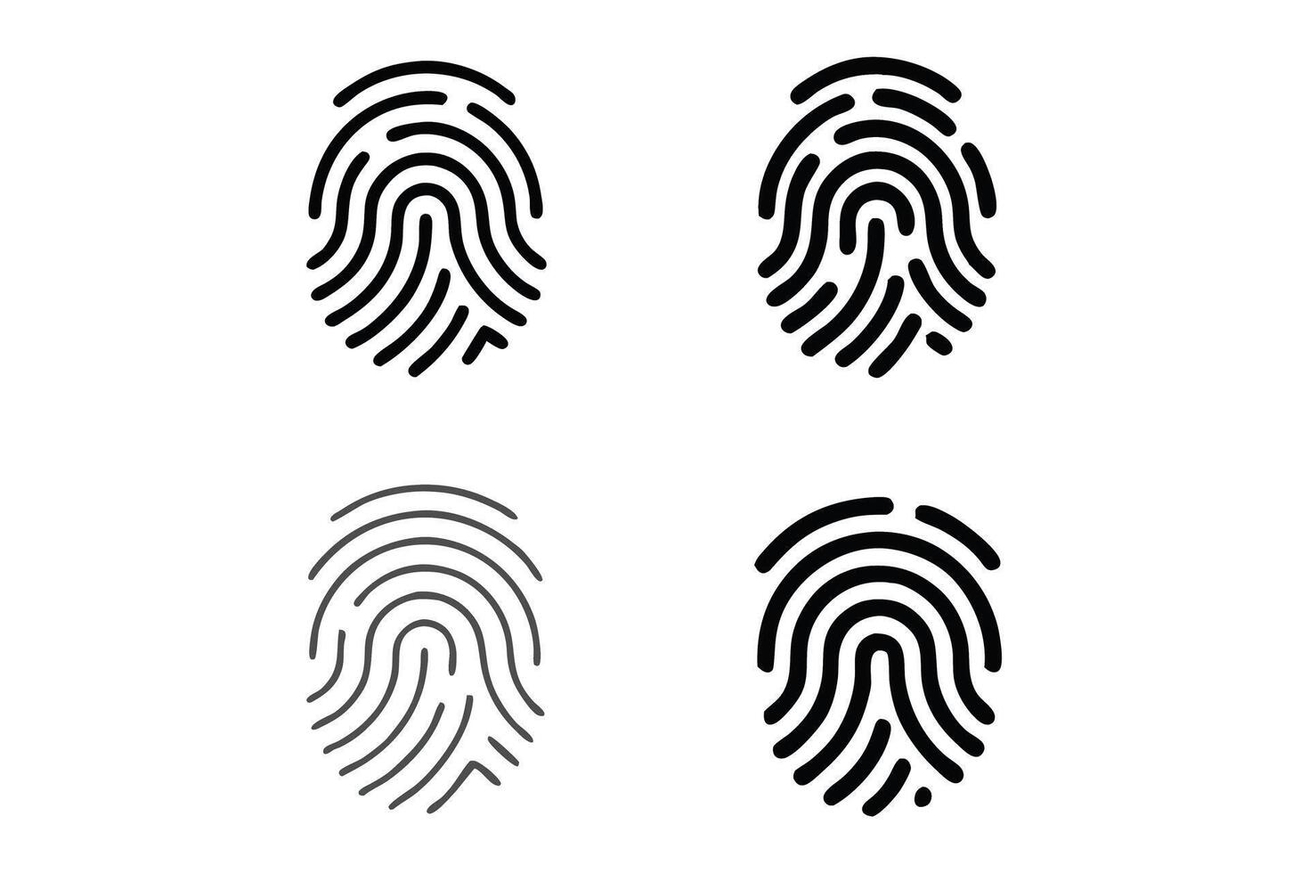 Collection of fingerprint line art icons in minimalistic and modern styles, highlighting individuality and biometrics for tech and forensic projects vector