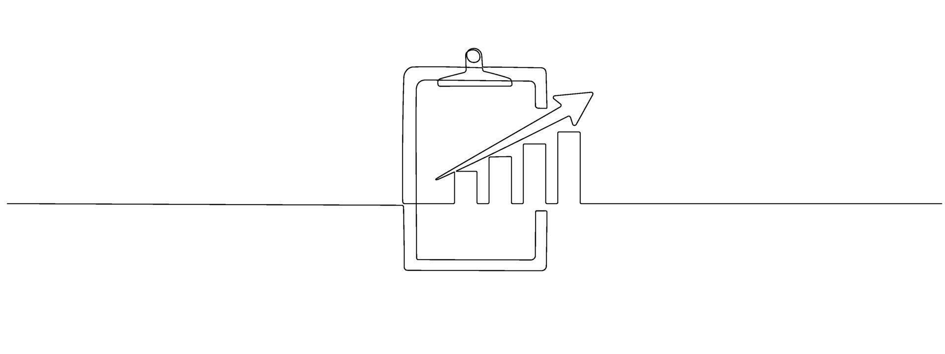 Clipboard with a single continuous line chart. . illustration of business growth. Single line histogram upward arrow. editable illustration. Pro Vector