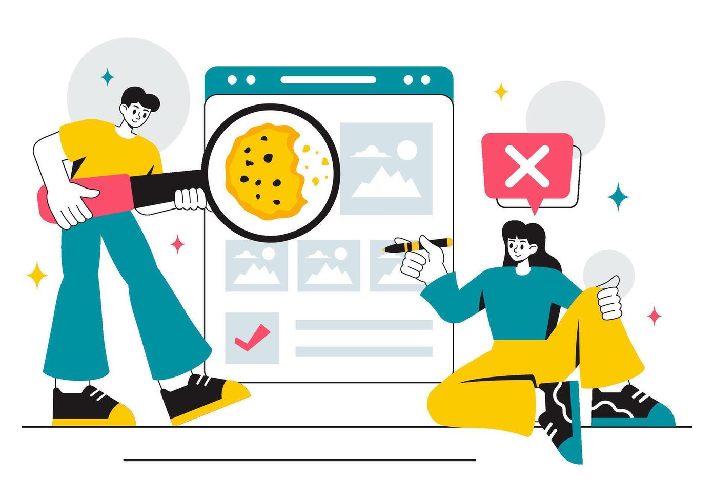 Flat Style Illustration of Website Cookies and Tracking Technology for User Activity Pro Vector
