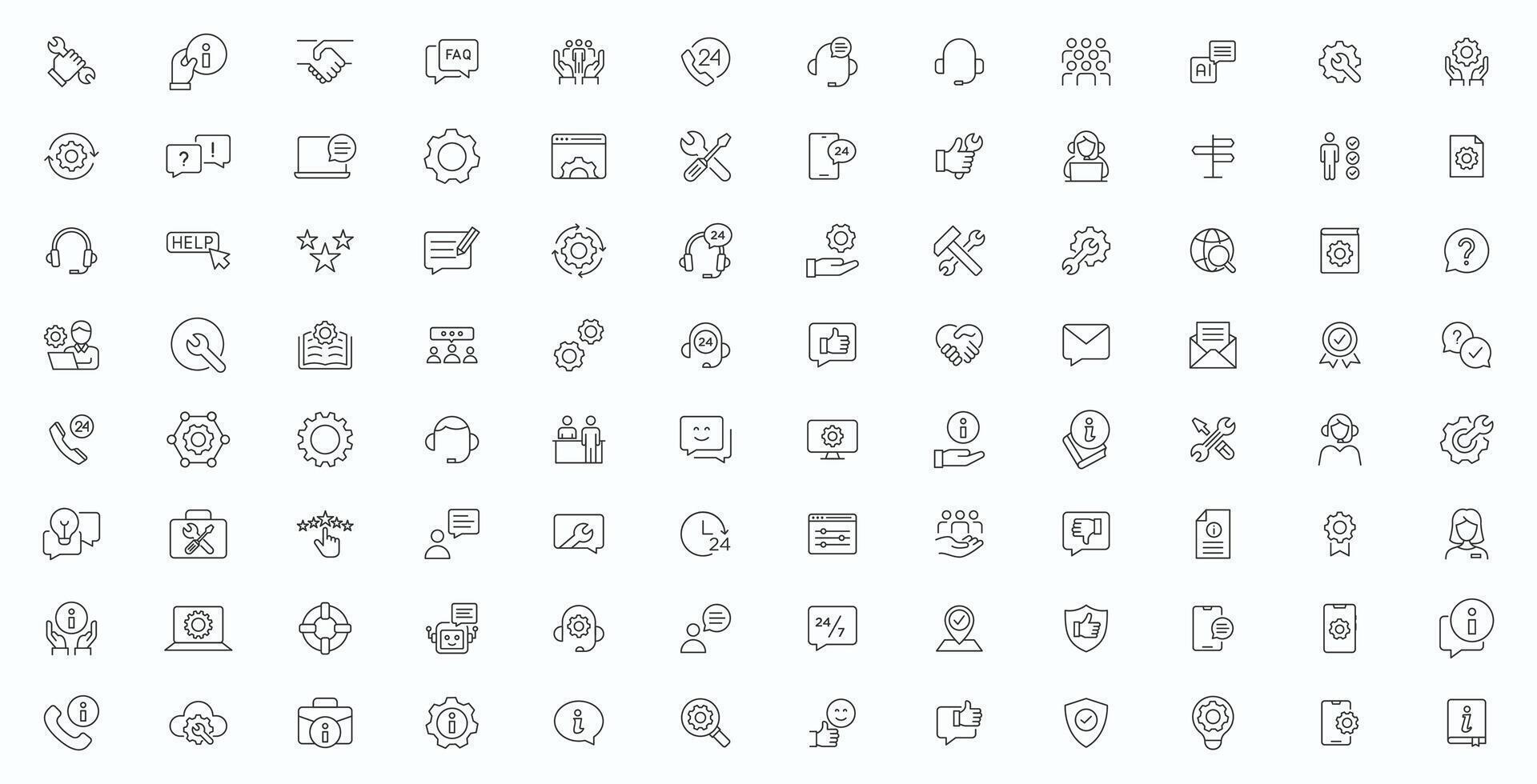 Support line icon set collection. Support, help, response, assist, technical, communication, faq and information illustration. Pro Vector