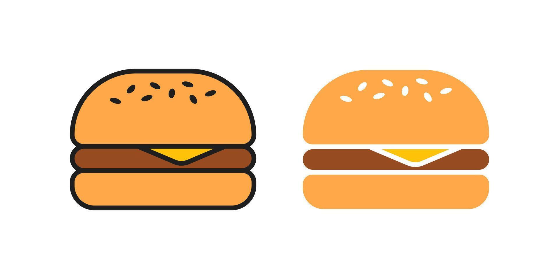 Burger Icon Set. Cheeseburger Symbol, Hamburger Sign for Mobile Concepts and Web Design, Illustration on White Background Pro Vector