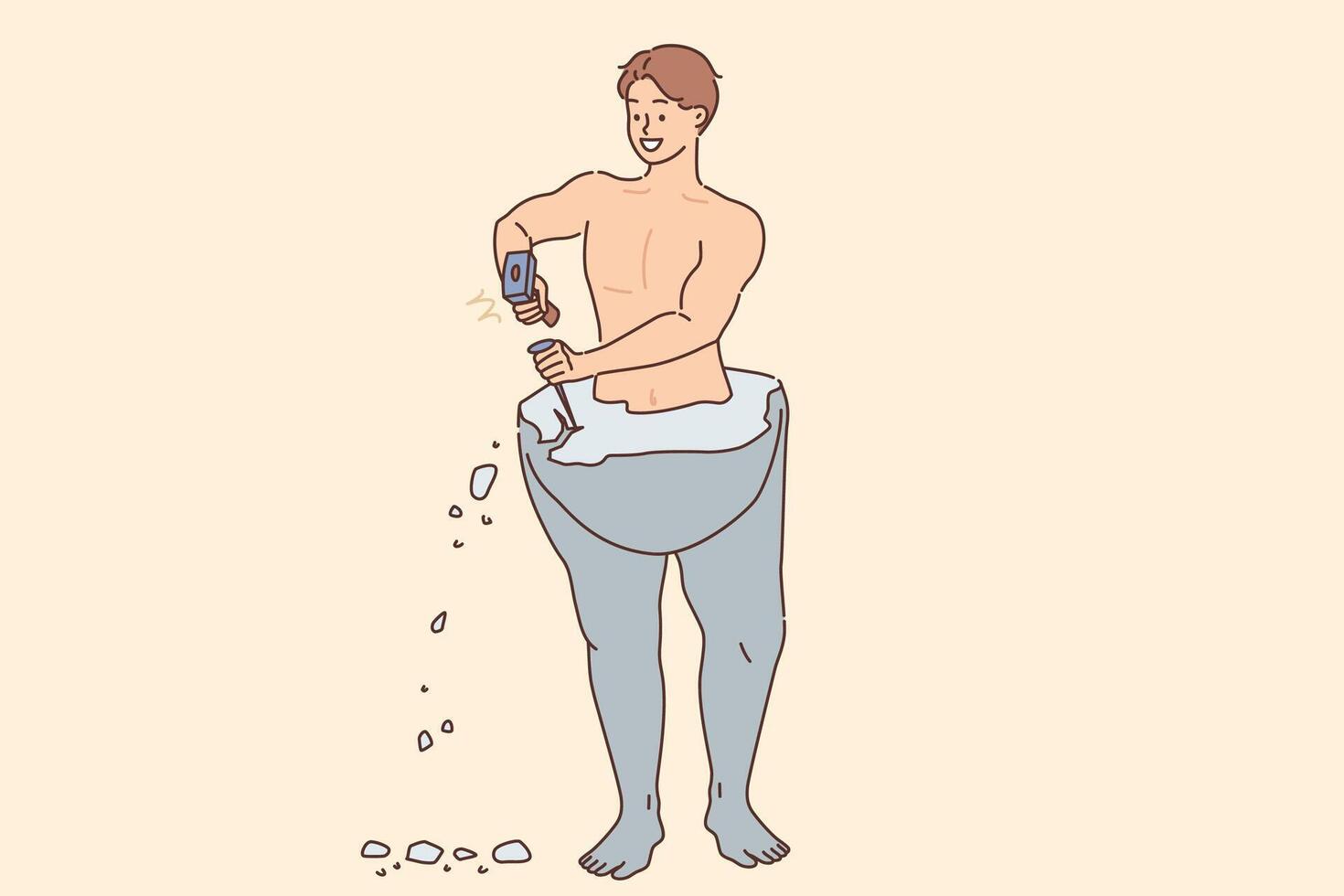 Man is engaged in self-development, creating ideal body, using sculptor professional tools Pro Vector