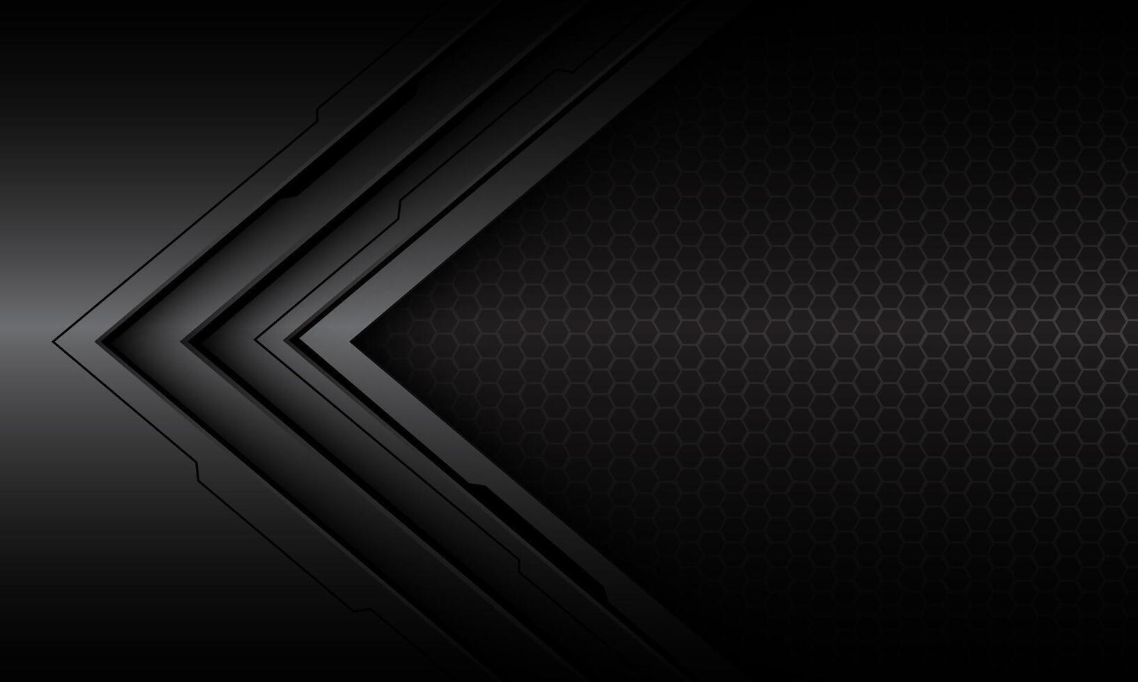 Abstract grey black cyber circuit arrow direction hexagon mesh geometric design modern futuristic technology background Pro Vector