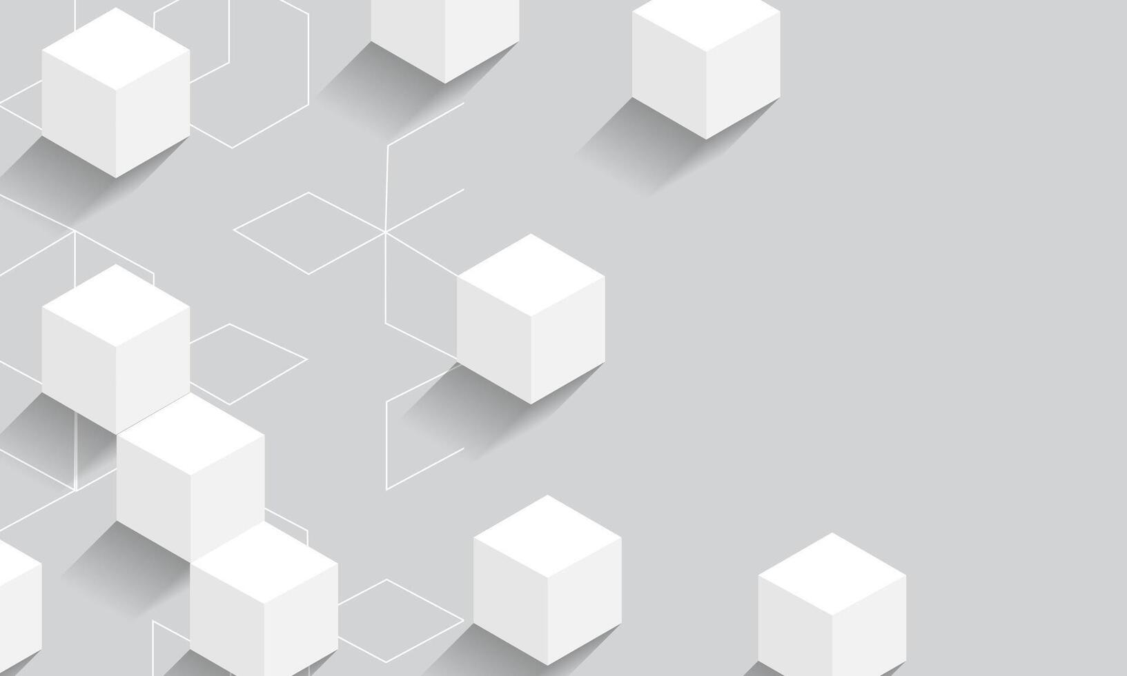 Modern digital geometric cube abstract background. Stylish realistic poster with white 3d cube background on grey background. Pro Vector