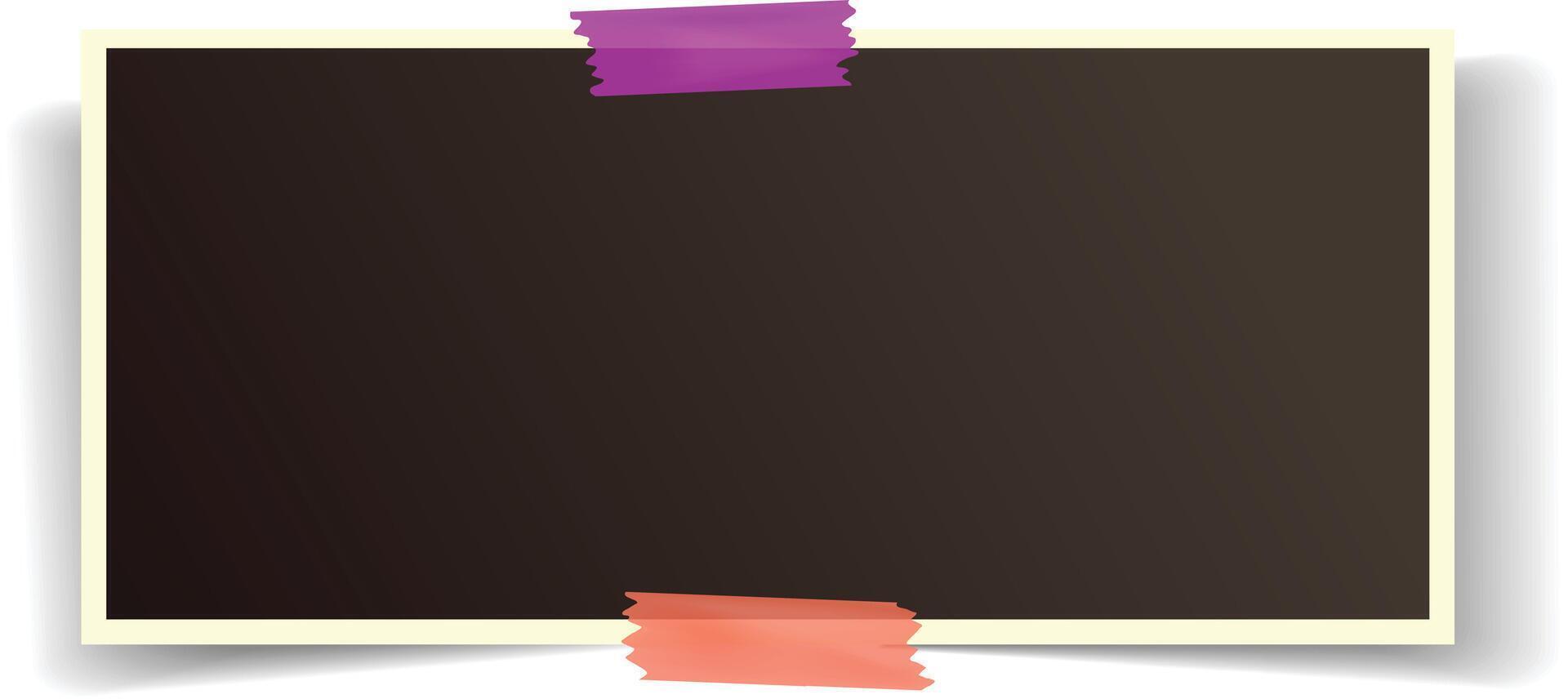 Horizontal instant photo frame featuring two vibrant adhesive tapes securing it against a clean white background, creating a striking and minimalistic visual appeal Pro Vector