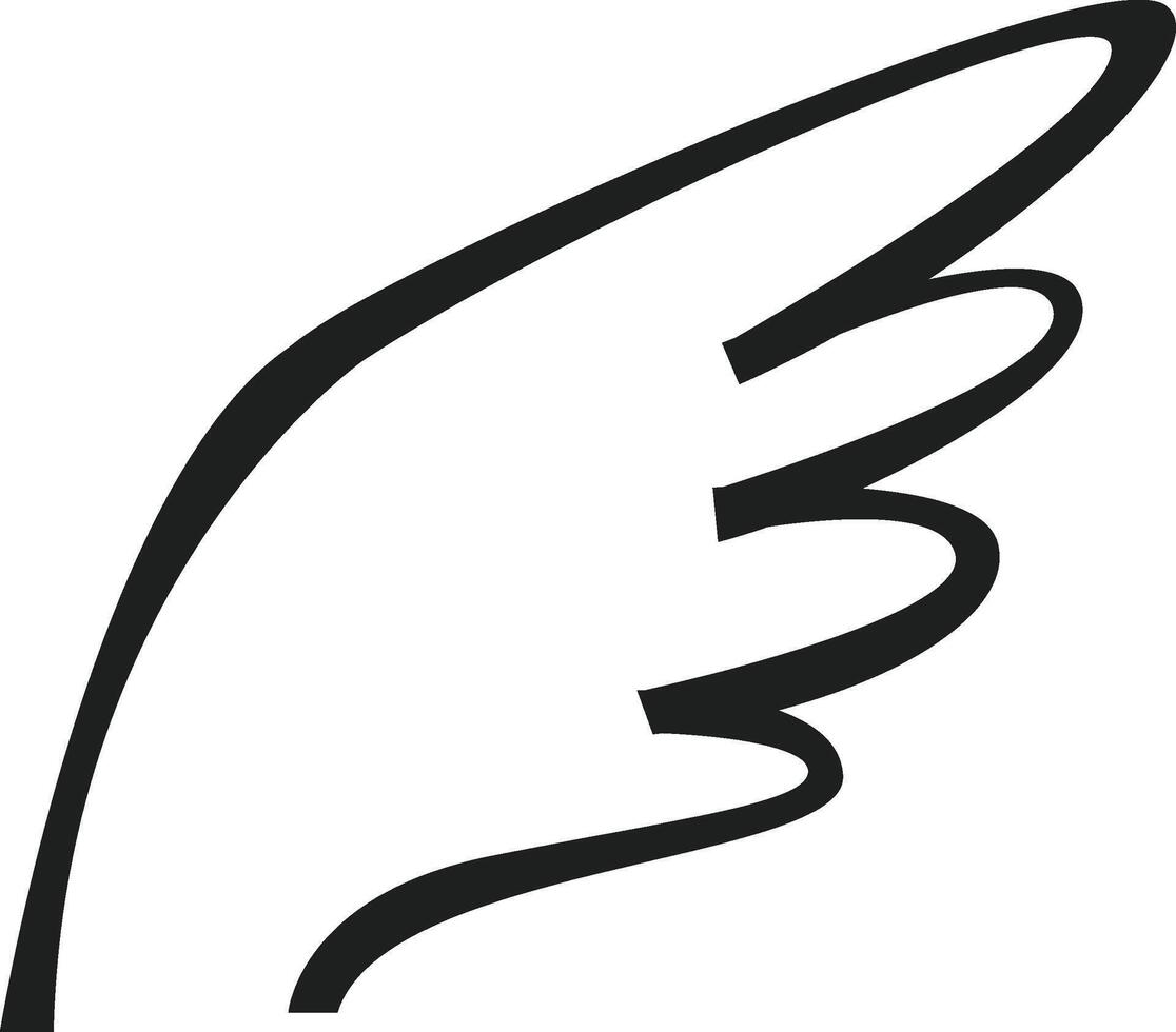 Simple line art illustrating a wing captures the essence of freedom, flight, and aspiration, set against a pristine white background that enhances its elegance and modernity Pro Vector