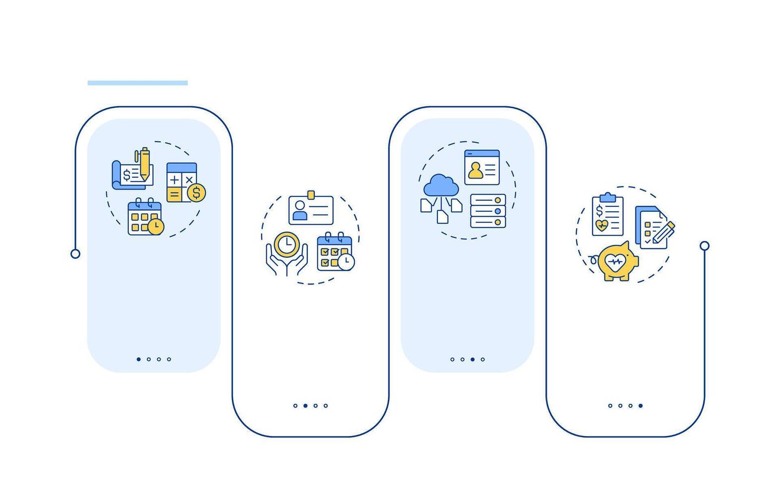 HRIS rectangle infographic . Human resource information system. Employees work for company. Data visualization with 4 steps. Editable rectangular options chart Pro Vector