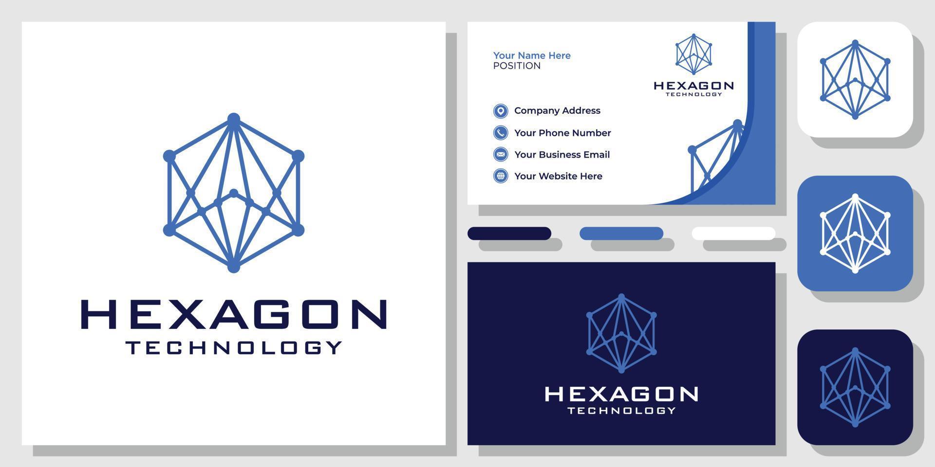 Hexagon Digital Technology Connection Network Data Security Logo Design with Business Card Template Pro Vector