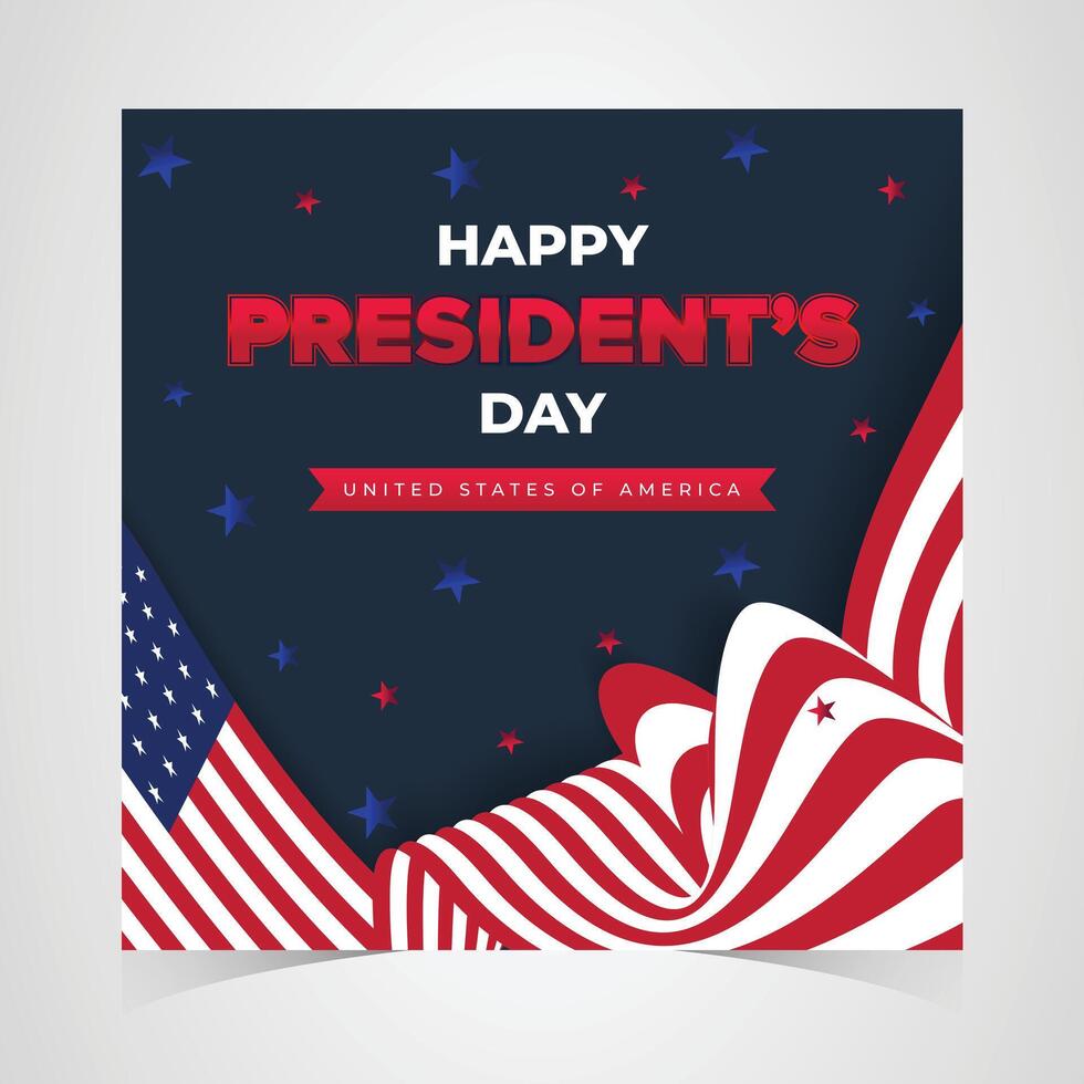 Happy presidents day banner with flowing red and white abstract wave patterns on a blue background in a clean patriotic design Pro Vector