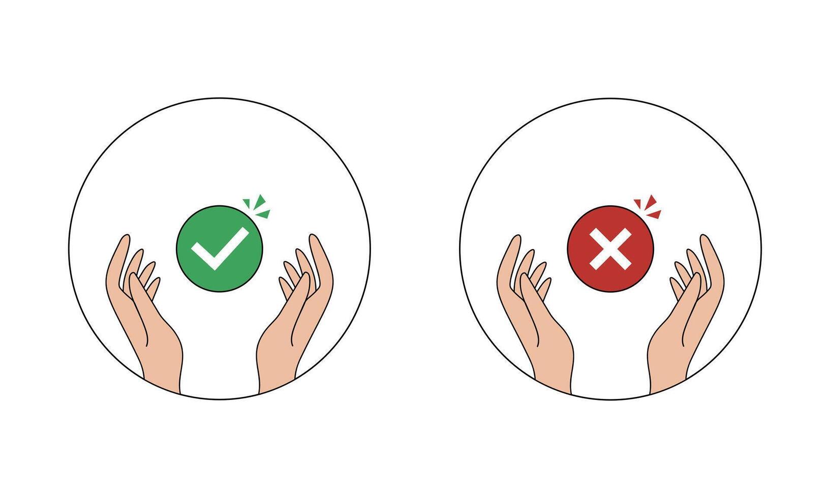 Hands showing correct and incorrect symbols in the shape of a circle Pro Vector