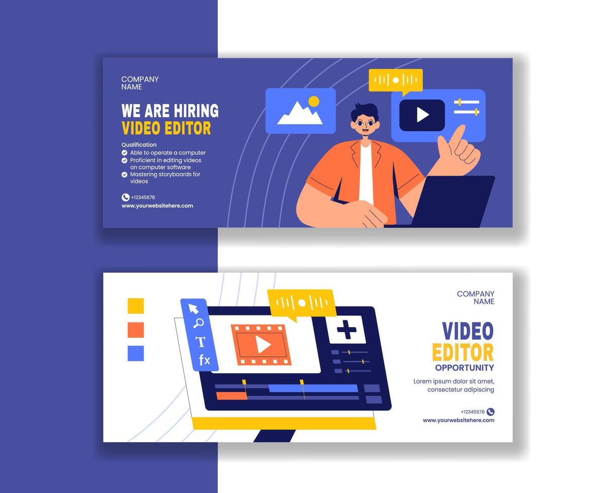 Horizontal Banner Design Featuring Editing Software in Flat Cartoon Style with Hand-Drawn Templates Pro Vector