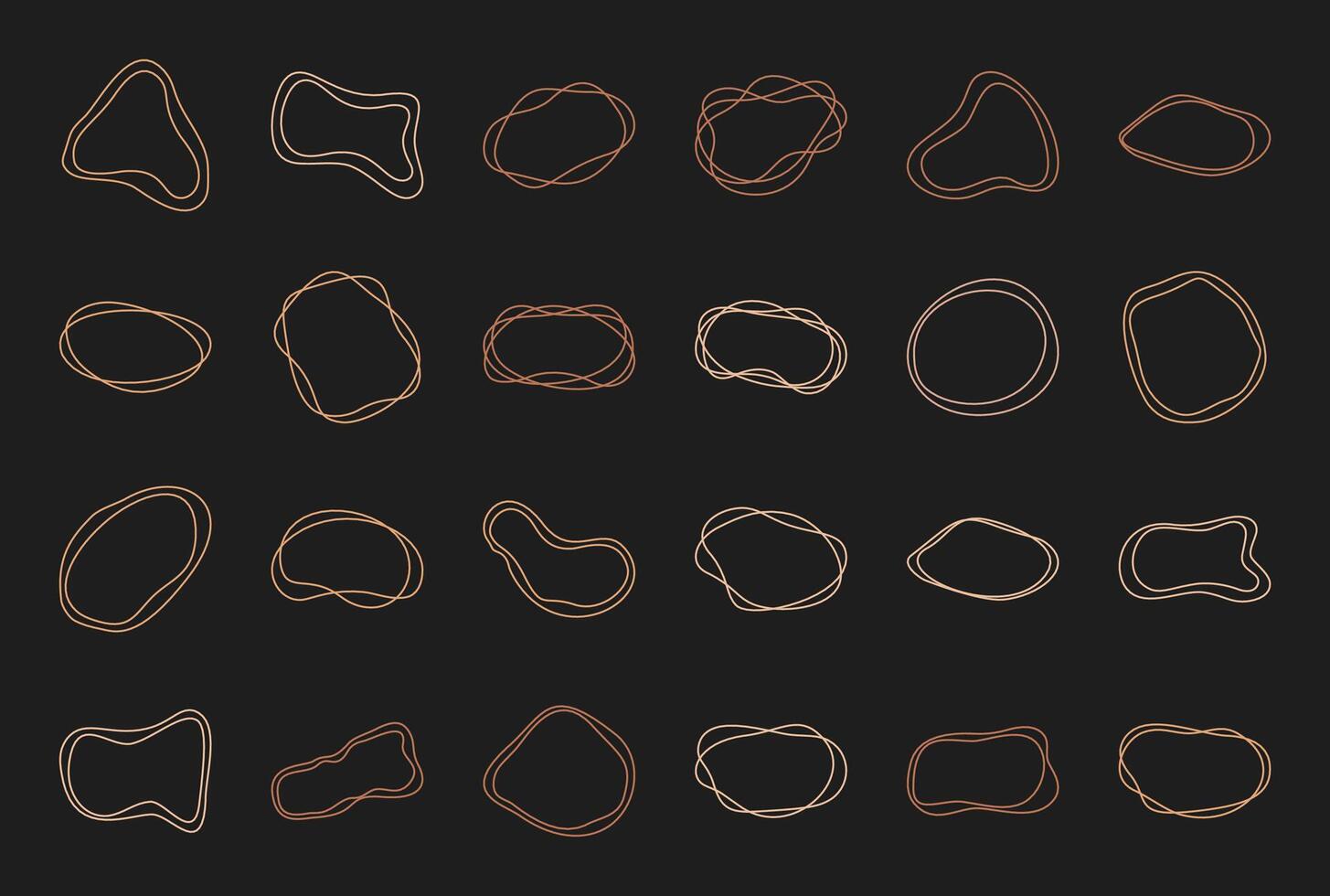 Modern geometric minimal line frame graphic set, flat liquid asymmetric round element collection, cute boho random silhouette trendy abstract amorphous shape design, doodle organic irregular form art. Pro Vector