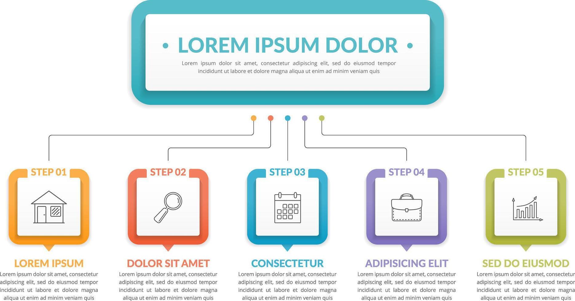Infographic template with main idea and 5 steps or options, workflow, process chart Pro Vector