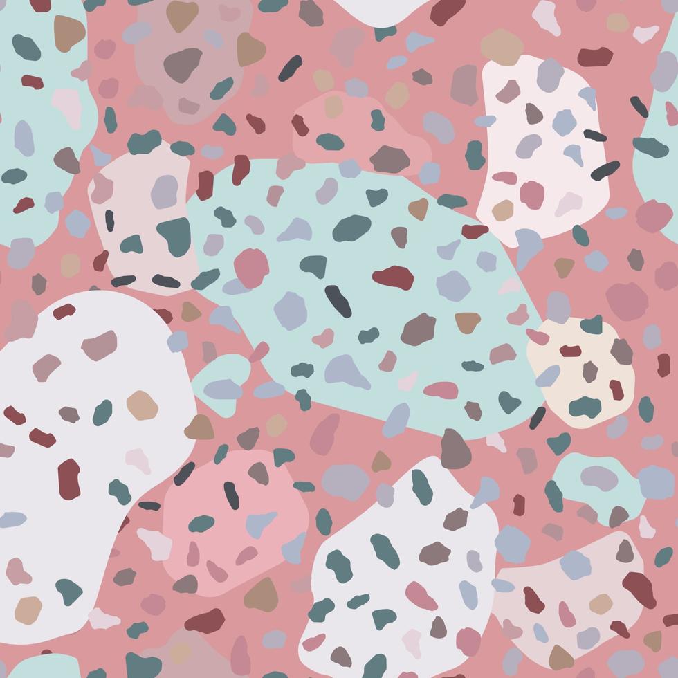Abstract terrazzo seamless pattern on red background. Pro Vector