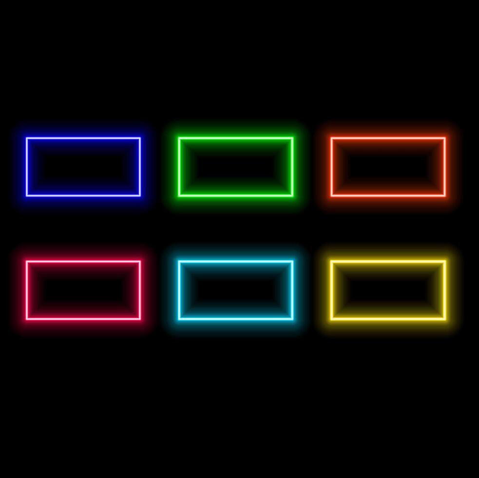 Neon Glowing Rectangle Frame for Banner on Dark Empty Grunge Brick Background Pro Vector