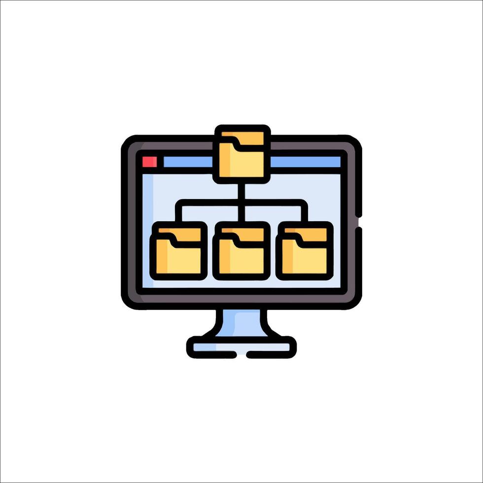A computer monitor with folders on it vector