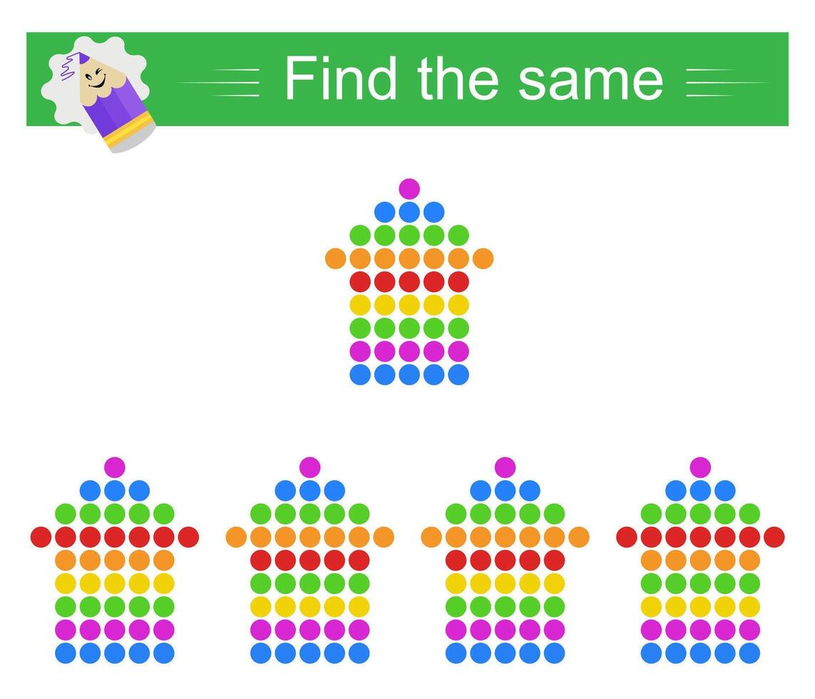 Puzzle game. Task for development of attention and logic. Need to find same house. illustration Pro Vector
