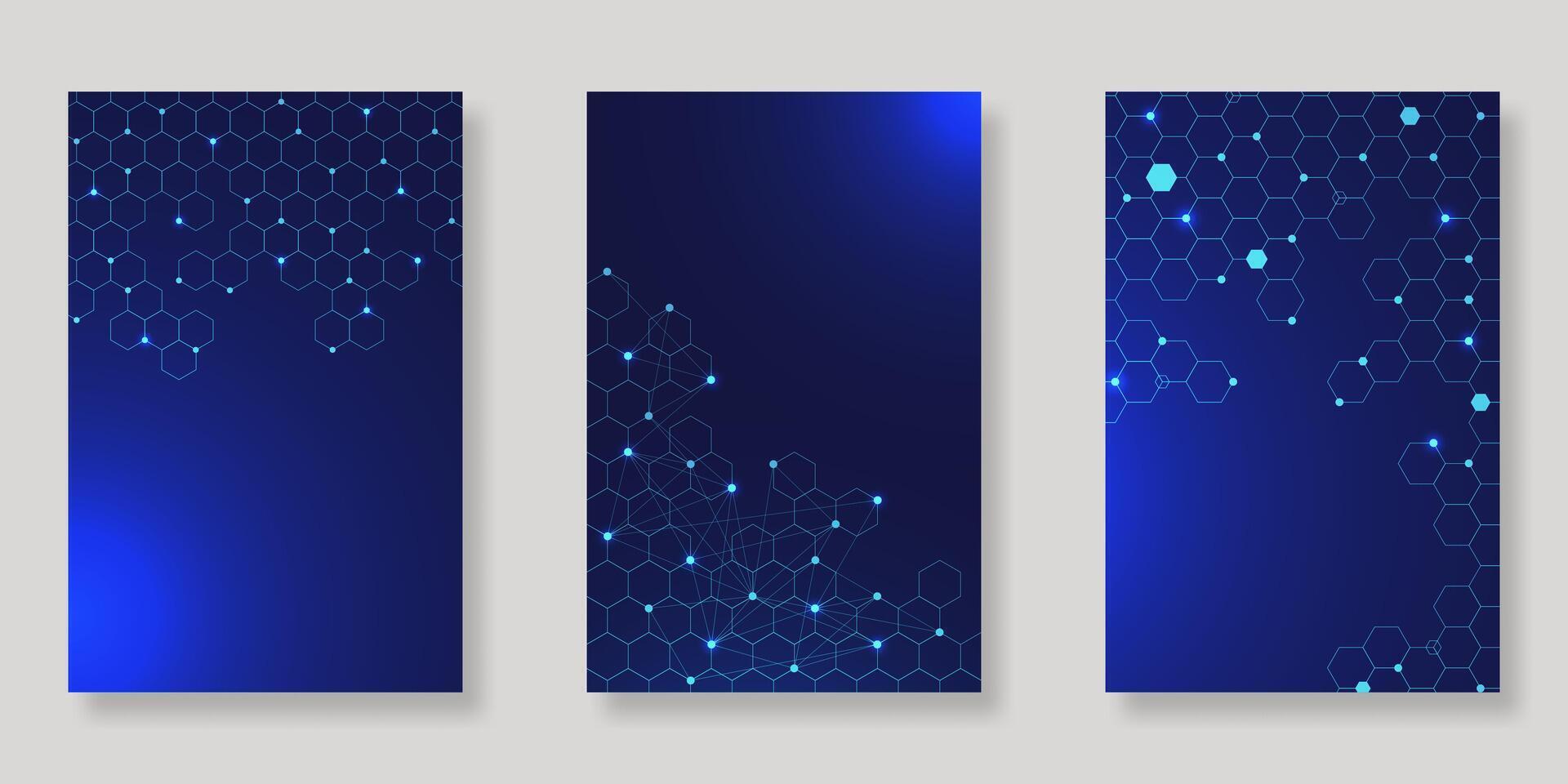 Set of abstract futuristic hexagon for network technology, digital data and science concept on dark blue Pro Vector
