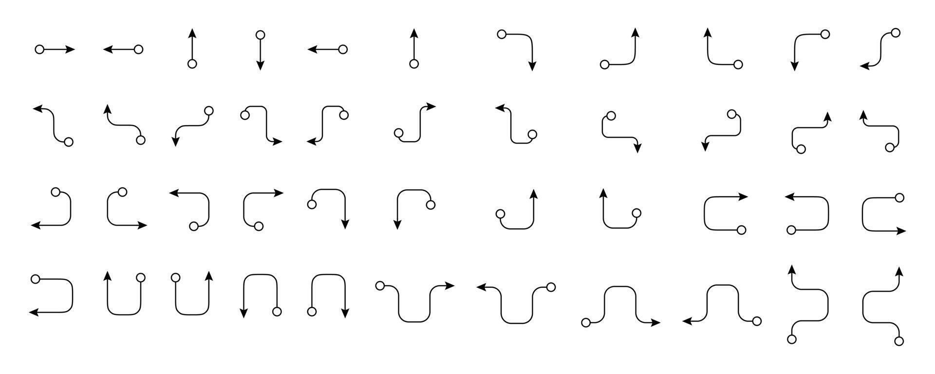 Set of Flow Arrows. Collection of arrows. Set of arrow icon. Arrows set elements. Arrows on isolated on white background. Flow arrow. Pro Vector