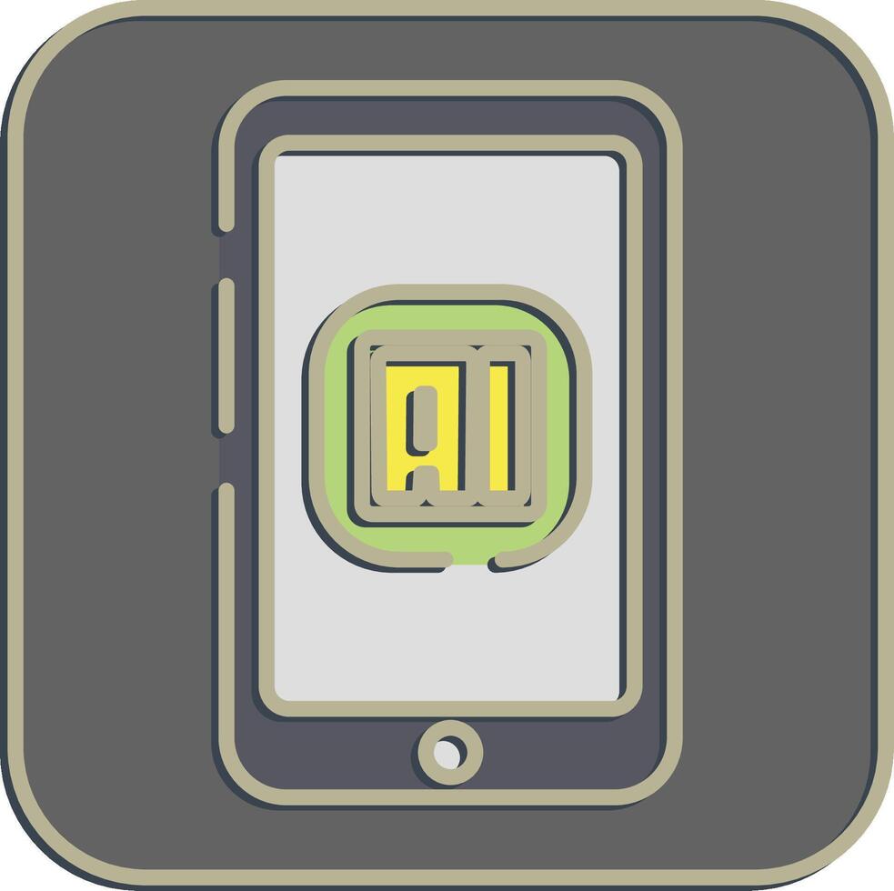 Icon ai application. Artificial intelligence elements. Icon in embossed style. Pro Vector