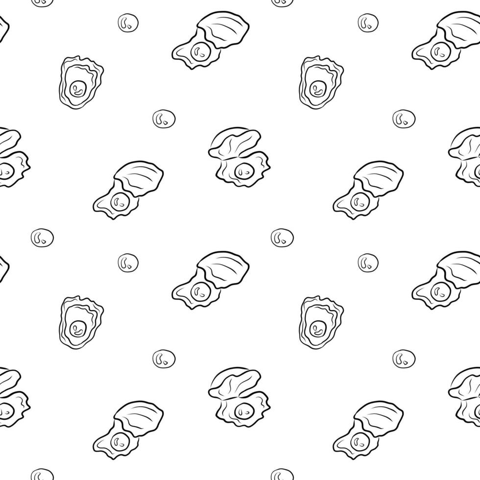 Seamless pattern with pearls and mollusk shell, ocean, sea pattern Pro Vector