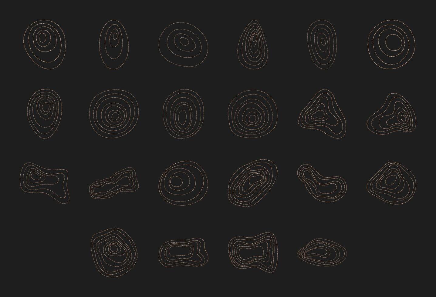 Doodle boho minimal concentric line circle set, flat abstract asymmetric form graphic, trendy organic random shape design, cute geometric irregular silhouette art, modern liquid amorphous element set, Pro Vector