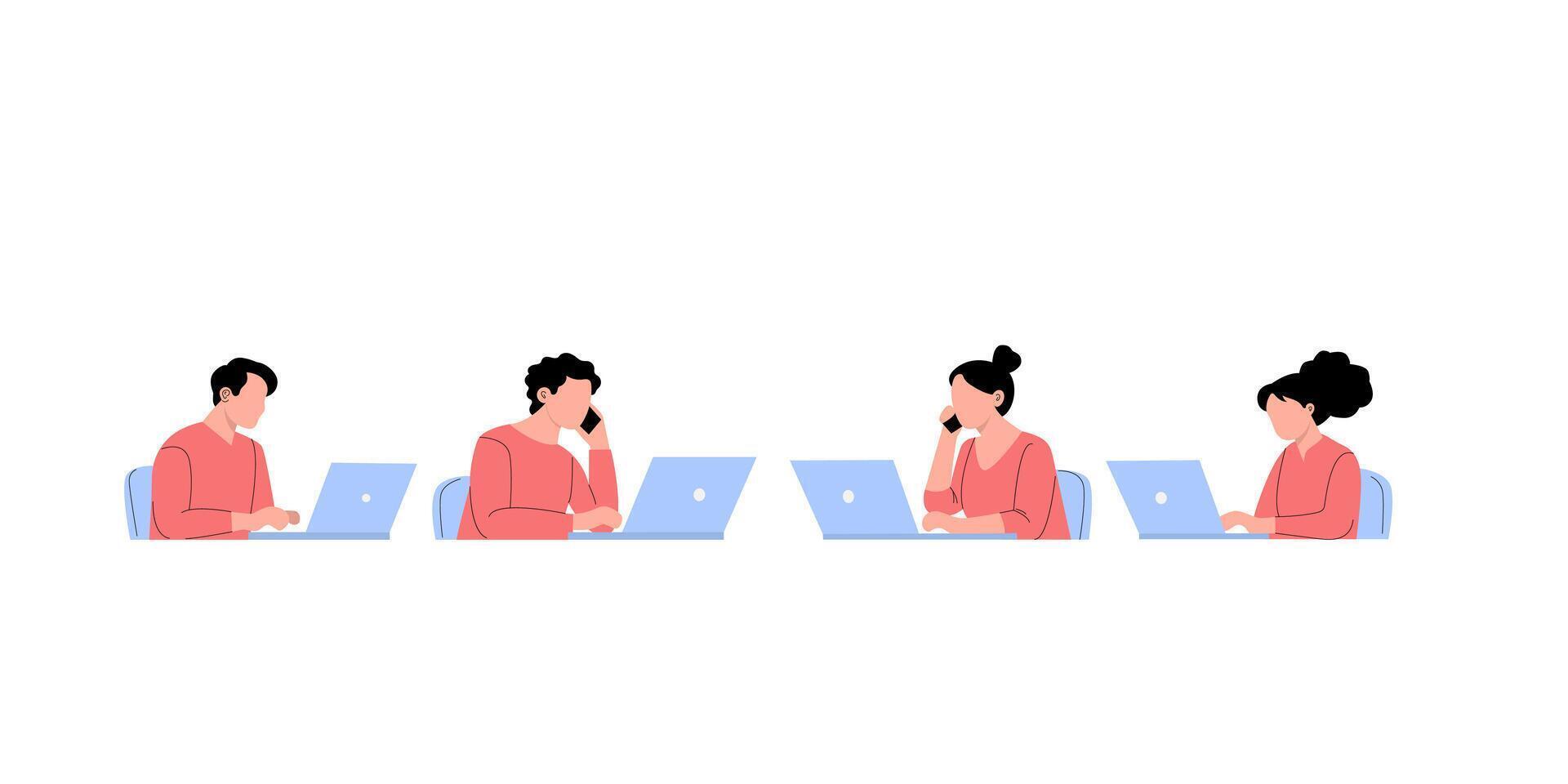 Diverse Team Working on Laptops, Communicating Pro Vector