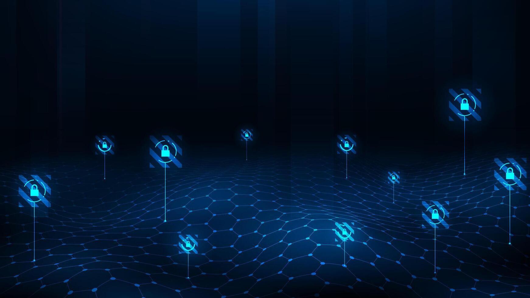 Futuristic big data security connection concept. Wave line hexagon pattern abstract digital technology background. Pro Vector