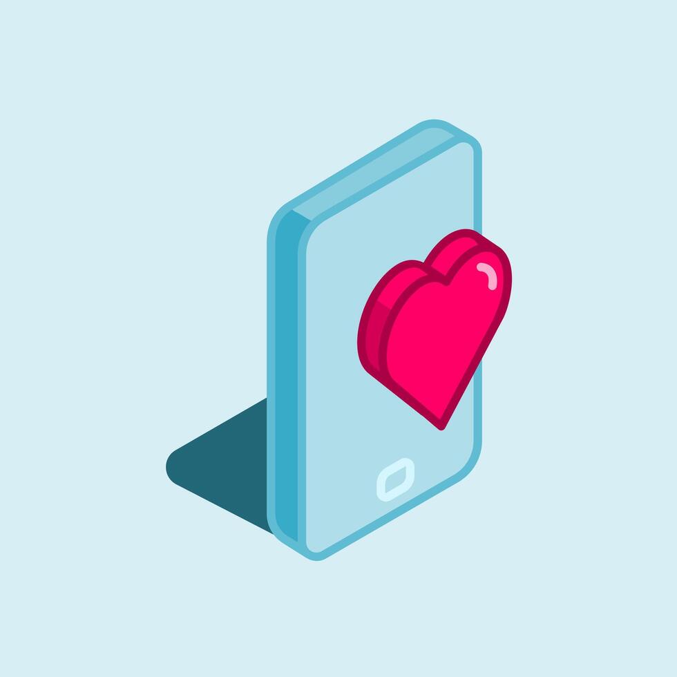 Design Illustration graphic of handphone and like icon with isometric style. Suitable for UI, mobile design, web design, etc vector